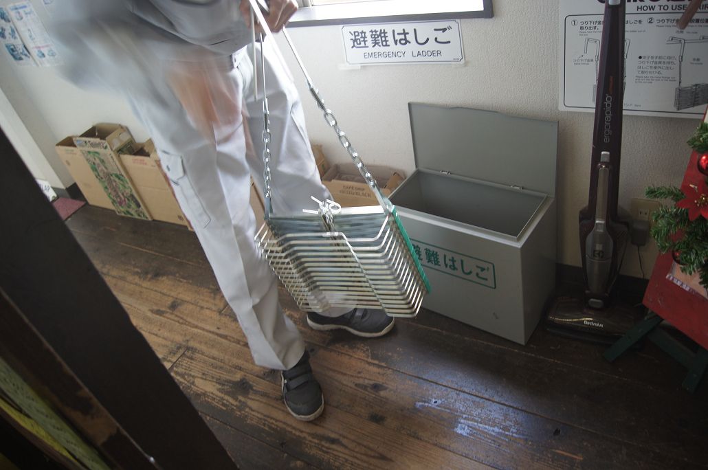 避難はしごで降りるのはこわいですね   使うことのないように心がけます