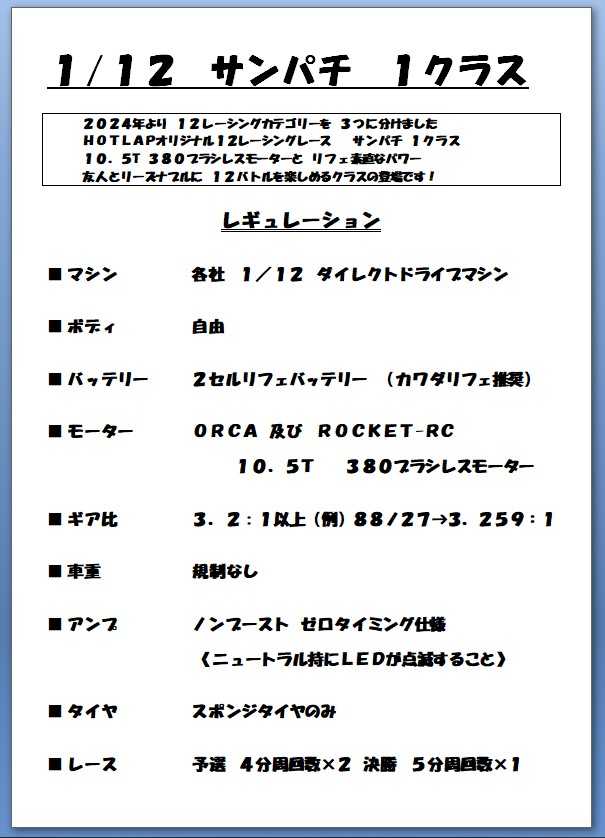 1/12レーシング サンパチクラス レギュ