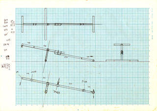 さて、大まかな寸法を方眼紙に書き、細部の寸法を検討します。 今回は、以前使っていたラックを分解してその材料を元に製作をするので、当初考えていた通りに行かない可能性もあります。 ですから、図面と分解した部品とコレオスの荷室を見ながら、実際の寸法を採寸、計算して割り出さなければなりません。 ラックを乗せたままでも一定以上の積載物が積載可能でなければ、今回の「バージョンアップラック」の製作は「失敗」の烙印を押されてしまう事になりますからね(;´Д`)イノベーションw ここまでの現車確認で得られた「考慮すべき課題」は、スキーハッチが車輌センターには無い事。 カーゴネットの取り付けフックが荷室中心部にあるので、これをかわした位置にフレームを置く必要がある事などが上げられています。 しかし、何かの理由は有るのでしょうけど、ネットの取り付けフックとか「どうして」センターに無いんでしょうね?おおむね2cmくらい右にオフセットしているんです。 スキーハッチはシートの構造が「6:4可倒式」なので、若干オフセットするのはありそうな事です。しかし、何でフックがオフセットしているのか?フランソワ・ローラン氏に聞いてみたい(^ω^)ですよw 何か深い思想に裏打ちされた「イノベーションw」があるのやもしれん(#゚Д゚)クワッ!!