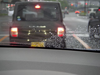 モリワイパーを施工してから、ようやっと本格的な雨に遭いました。 撥水コートと交換したワイパーとモリワイパーの三者が、上手い塩梅に作動した上で、オートワイパーもいい具合に反応してくれると良いのですがね(´ω`) で、結果どうだったかと言うと…分り難いですか… 全くビビらないと言う事にはなりませんでした。 画像を良く見ると分りますが、ビビリの跡が見えるかと思います。 様々な条件によって、ビビッたりビビらなかったり、已むを得ない事なんでしょうね。 モリワイパーによって摩擦抵抗が減っているので、ワイパーの作動は静かでスムーズになりました。 ビビッても酷くないんです。割合と静かで、「だだだだだだっ」て感じだったのが「ととととっ」位にはなってますから、何とか我慢できます。 コレで耐久性が有れば文句ナイんだけどね(´∀`) セーフサイトとモリワイパーの相性についても、これから観察して行きます。 オートワイパーは撥水コートとの相性は悪くないようです。 概ね最低感度の位置で、ワシの好みよりも少しだけ鈍感に感じる時があるくらいでしょうか。 感度を上げると、「わしわしわしわし」拭き始めて不快なので、最低感度でワシにはちょうど良いです。 この辺りも観察して行ければと思いますが、いつの間にやら梅雨も明けてしまったので…(´ω`)