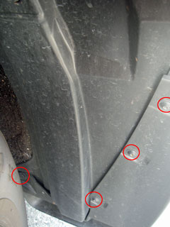 そろそろ下書きの数が減ってきているので、エントリー数を稼ぐためにも追加の画像をアップします。 ワシ自身もコレの件も有って興味が湧いてきているんですよ(・∀・)フロント。ネジが4本って書いたんですが、1本は「樹脂リベット」でした。一番左、奥側のものが「樹脂リベット」。奥に「樹脂リベット」が見えます。ガード上部は平坦ですが一番下は凹んでいます。リヤ。バンパーに金属クリップをつけて、トルクスネジ4本で固定してあります。こちらは結構凸凹しています。フロントと比べると、広範囲に凹んでいます。リヤのタイヤハウスは、硬いカーペット状のパネルで覆われています。RX4もそうでしたが、騒音対策のようです。ご覧の通り凄く汚れるんですけどね、細かなゴミが付着して(´∀`)この仕様で塩カルの影響とかどうなのかと思っていましたが、RX4では全く分りませんでした。コレオスは樹脂リベットですが、RX4は金属クリップなんかで留めてあったんですけどね。 この日、まじまじとマッドガードの後方を見てみたんですが、流石に無いよりは良いのではないかと、思える程度の効果は有るように思いました。 欲を言えばリヤ用がもう少し長ければ良いなとは思いますが、まあ、純正パーツとしてはこのくらいがバランスが良いでしょうね。 ワシとしてはアレをつけた上に、汎用マッドガードの黒いので延長したいなぁ~と、妄想はしているんですが(;´Д`)…
