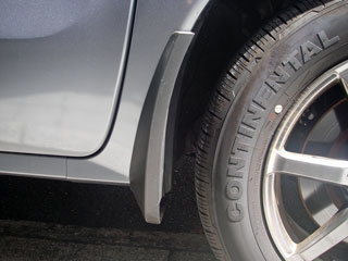 マッドガードの画像つき感想をアップします。注意!大量の画像と、文章が書かれています(#゚Д゚)クワッ!!マッドガード前。フェンダーとの隙間は両面テープ(?)で止めてあります。外方向は良いですが、下方向へは短いですね。VR.G7カッチョ(・∀・)イイ!!ネジ4本で固定してあります。マッドガード後。フロントよりも短く感じます。下からネジが1本。こちらから3本。フロントと同じく、両面テープ(?)で隙間をシールしてあります。付いてるのかいないのかwさて、まちゃくんさんが思案していらっしゃる「マッドガードの効能」ですが、この辺り、ややバイケース的な所が有ると思います。 ワシが住んでいるのは広島市で、まちゃくんさんのお住まいや、マッドガードに付いてお尋ねになった営業マンさんとは、その住んでいる気候環境が「全然違うのではないか」と言う前提で、ワシ自身の過去の経験を、チョッと長くなりますが書きますのでお読みいただければと思います。 (´∀`) 上に載せたRX4に取り付けていたマッドガードは「ワシ謹製w」でして、色と言い大きさと言いwチョッと大袈裟になるようにと思って、なかば「ジョーク的」ドレスアップの一環として取り付けたんです。しかし、マッドガードの本質的な機能である「泥除け」としては、ワシは「満点」の出来だったと思っています。 RX4は特装車で無理に車高を上げてありますから、リヤタイヤなんて2/3位ボディーからはみ出ていて、泥撥ねがとんでもなく酷かったんです。 このガードはフェンダーから4cm位はみ出ていますし、一般的な車止めギリギリの高さまで下げた取り付け高さに、ホイールハウスの奥までカバーする幅。これ以上は「無理」と言うくらいの大きさでした。ですから、コレを取り付けてからと言うもの、降雨降雪時の車の汚れ方は随分と少なくなりました。ワシの要求する機能を、ほぼ完全に満たしてくれたと思っています。しかし、その「ワシ謹製w」マッドガードに欠点は無かったのか?と言えば、無い訳ないですよね(゚∀゚)例えば、ホイールハウス内でマッドガードに雪が付着して詰まる、とか。点検整備の時に邪魔、とか。見た目に派手でw目立ち過ぎる(マッドガード自体も車も)、とか。空気抵抗が増えて燃費に悪い、とか…どちらにしてもこれらとのトレードオフかなと、思います。ではコレオスの場合はどうか?コレオスもRX4みたいにしてやろうかなって思ってたら、嫁さんに「もう変に目立つのは嫌」って言われて(;´Д`)地味目な感じで行く事にしたんです。ですからマッドガードも純正の「地味で目立たない」ものにした訳です。それで、前置きが物凄く冗長になりましたが、ワシのココまでの純正マッドガードに対する感想は「中途半端」かな、って感じでしょうか。短いので効果は低いのではないかと。実際には、納車後4ヶ月しか経ってない上に、悪条件下(積雪路・泥濘路)の走行は殆ど経験が無く、「リヤスポイラー」と「マッドガード」の効果効能に付いてはほとんど確認できていません。さらに、納車当時から装着していますから、無装着のコレオスがどの程度汚損されるのか知りませんので、その辺りは何とも言えません。純正マッドガードは、その他のエントリーの画像を見ていただければお分かりかと思いますが、実に「地味」で「目立たない」存在ですし、カバーする面積としても狭いですから、効果が低くても已むを得ない所かと。「マッドガード」に何を求めるかって事だと思うんですが、結局の所「泥除け」としての機能を追い求めれば、上のRX4みたいになるし、見た目の「スマートさ」を求めれば「不恰好」なだけだし、確かに難しいところですよね。そこで個人的に気になってるのが…これなんですけど(;´Д`)w純正マッドガード程度の面積をカバーしているんですが、見た目がカッチョイイ(゚∀゚)!!モトイ。まちゃくんさんのコメントによると、「年に数回のスキーで」との事。スキーの道中と言っても条件は様々で、距離が短かったりキレイな積雪路が多ければマッドガードは必要ない感じもしますし、ワシの住んでいる広島のように積雪もアッと言う間に融けるような地域だと、ワシにとっては必須です。必須と言うのは、ワシが思うメリットがデメリットを上回っているって事なんですけどね。日常の走行での泥撥ねが全く気にならないようなら、年数回の「ためだけ」にマッドガードって言うのも1.8万円程度とは言え、もったいないかも知れません。長文な割りに実りの無い内容で申し訳ないなあ(´・ω・`)なにか他にもご意見ご要望がございましたら、可能な限り(´∀`)対応しますのでコメントなどお寄せ下さい。