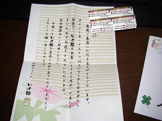 先日、我が家にこんな物が届いたんです。三千円分の金券。300円×10枚。何処から届いたかと言うと、よく見るとお分かりかと思われますが「いよ路」からです。特別に何かあった訳ではなく、普段貯めている「ポイントカード」が通算三冊になったので、その中から抽選で贈られているようなのです。(゚∀゚)しかしまあ、なんと言うか、あの値段であれだけの品を提供して、ポイントカードの上に更に抽選とは言え金券まで出していたのでは、割に合わないのじゃないかと思うんですが、まあ、大丈夫なんでしょうけど(´∀`)…