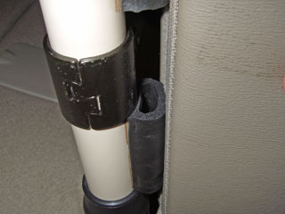 ランプやらワイパーやらホイールやらピッチやらで、気を取られているかと思いきや、着々と進行中です。これがD型発泡ゴム。こんな感じです。上から見るとこうです。ほぼ、最終形かなと思いますがどうでしょうね。このまま車に装着して、しばらく走ってみようと思っています。ストッパーの足がトランクフロアに着いて跡が付きそうなので、何か敷いたら良いかも。あと、縦支柱の角度を固定できれば尚良いかな。悪くないようならスキーを積載してテストしてみる。
