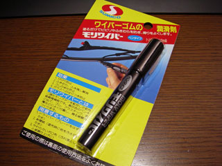 何だかんだで手間取ってしまって、本題のビビリ対策を打てないでいた訳ですが、やっと買ってきました。モリワイパー。広島市の安佐南区にある「ジェームス」で買ってきたんです。割引をしてもらえたので税込み678円也。修正ペンみたいな感じです。替え芯も付いています。そのまんまな構造ですね。まだ施工しては無いんですけどね。天候が安定していて暇な時って言うと、なかなかタイミングがねぇ(´ω`)