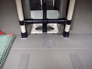 お久しぶりのスキーキャリアネタです。放置はしていませんよ(゚∀゚) スキーを積載せずに、キャリアのみの搭載テストを行っています。 3週間程度、装着したまま走行していましたが、シート背面のH型ストッパーの足がトランクフロアを傷めそうだということで、下の画像のようにしてみました。わかりにくいですねwアルミニウム製のL字型のステーです。 1個の値段がえらく高価だったんですが、似たような物で、そこそこ見栄えの悪くない物って事になると「帯に短し襷に長し」な物ばかりで、結局コレにしました。 固定用のネジ穴が有ってホントのこと言うとイマイチなんですけど、ま、当面はコレで行ってみようって事です。 未積載状態で1週間くらいこの状態で走行して、少しだけずれています。 今はまだ置いてあるだけなので、滑り止めのネオプレンゴムでも貼り付ければ、ほとんど動かないだろうと思います。 継続してテストして経過が良ければ、いよいよスキーを積載してテストしてみます。