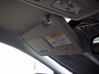 実際の所、ワシはこんな使い方を主にしているわけです。サンシェードを押さえるために開いています。さて先日、嫁さんが乗車中に、あまりに日差しが強いもんでバイザーを助手席側のドアの方へ移動させようとして…?こ、コレは(;´Д`)内装に思いっきり当たっていますよwををっw上の画像の所から「ずりずりずりっ」と、ここまで来ました。いやw別に使えるし、機能に問題は無いから(´∀`)良いんですけどね。