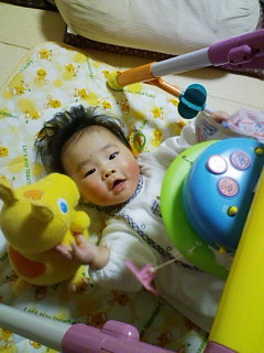 無事に6ヶ月を過ぎ、体重も8kgオーバーと、順調に成長を続ける我が息子の悠史くん。お気に入りのメリージムで、お友達のロディーと遊んでいます。そんな悠史に、ある物が生えました。もう少しアップにしてみます。お分かりになるでしょうか?そうです、歯が生えてきました。ちっちゃな歯ですが、僕の指に歯型を残すほどのパワーを秘めています。(笑)寝返りも上手になって、うつ伏せの状態から仰向けの状態に戻れるようになりました。これから段々と目が離せなくなりそうですが・・・。それから、子供を車に乗せて出掛ける機会が増えてきたので、とうとう我が家の車にもこんなステッカーが貼られました。悠史が大好きなロディーのステッカーです。土曜日の夜や祝日の前の日に、愛媛の南予地方で、このステッカーを貼った、愛媛ナンバーでシルバーのテリオスキッドを発見したら近くに僕が居るはずです。気軽に声を掛けて下さいね。