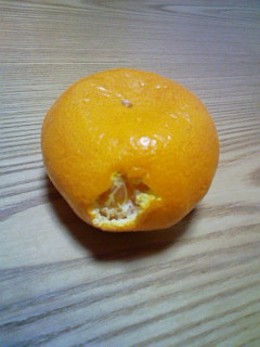 昨日、自宅に帰って夕食を食べようとすると目の前に変わったミカンを発見!んん?????変な所から皮をむぎ始めてるなぁと思ったのですが、すぐにピンときました。犯人はこいつです。大好きなロディーと一緒に記念撮影。ご機嫌の悠史です。お腹が空いていたのでしょうか??嫁さんいわく、手に持って遊んでいたのですが、目を離したスキに、このありさまだったそうです。最近はなんでも口に入れたがるので困りますね。まさかミカンを皮ごと食べようとするとは・・・。(笑)
