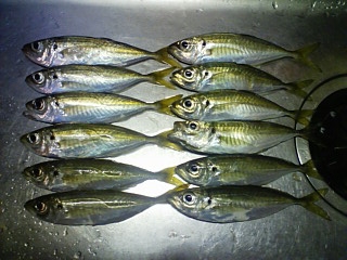 一昨日の夜、嫁さんから、「実家に帰らせて欲しい・・・。」と、言われました。これだけ聞いたら夫婦仲が悪いんだろうと誤解されるようなお願いに聞こえるのですが、ここ数日の間、息子の悠史の夜鳴きが激しく、精神的にも体力的にも疲れているようなので、「一泊して、のんびりしてきたら。」と嫁さんにリラックス休暇をあげる事に。という事は・・・僕にもリラックス休暇が。(笑)次の日も、当たり前に仕事ですが、風もなく温かそうなので、行くしかありません。(爆)ちょうど会社の人から、「そろそろ南蛮漬けサイズのアジが欲しいなぁ。」と、お願いされていたので、家から15分程の漁港にポイントを決定します。平均サイズは20cm前後と大きくはありませんが、群れが入ってくると簡単に釣れるので、南蛮漬け用のアジを仕入れるのにはピッタリのポイントです。防波堤の先端にあるテトラでアジングを開始しますが潮が効きすぎていて、目の前の海は川のように流れています。潮が少し緩んできた時、待ちに待った「コッ」っというアジ独特の小さなアタリが。すかさずフッキングをして、今年の初アジをGET。20cm前後ですが、バッチリ上顎フッキングです。この日のアジは活性がいまいちで、ほんの一瞬ですがバイトの「間」を意識的に作ってやり、バイトを誘発してやったほうが、より多くのバイトがありました。使用したワームは、ニードルリアルフライ2.5インチのクリアホロで、どこで使っても安定した釣果を発揮します。20cm以下のアジはリリースしながら、ポツポツとキープしますが、アタリが少なくなってきたのでワームを変更。最近お気に入りのスティールハント 1.5インチ クリアラメに変更するとバイトが復活!!最近は、この2種類のローテーションしかしてませんが、ワームのローテーションは効果があるような気がします。1時間ちょっとの初釣りでしたが、20~22cmを12本キープして、仕入れ終了!!やっぱりアジングは面白いですね。