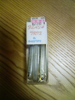 昨晩、24時間営業の魔界に足を踏み入れた時、ショーケースの中にキラリと光る物を発見!IKラインカッターです。なんじゃそりゃ??と思った方も多いと思うのですが、バスプロの今江克隆プロがプロデュースするIMAKATSUのラインカッターです。黄色のロゴが入っている以外は、極々普通のラインカッターですが、カッコいいから少々高くても良いのです。(笑)フックシャープナーも付いていますが、未だに一度もフックを研いだ事はありません。(爆)PE専用のはさみと一緒に記念撮影。実は、今まで使っていた安物のラインカッターと、今回購入したラインカッターには大きな違いがありました。高いからという訳ではないでしょうが、刃と刃を合わせた時のすき間が全くありません。もちろん切れ味も抜群です。安物のラインカッターは、かなり力を入れないと刃と刃のすき間ができてしまうのですが・・・。もちろん、切れ味もそれなりでした。ネタがないので、どうでも良い小物の話でした。(笑)にほんブログ村