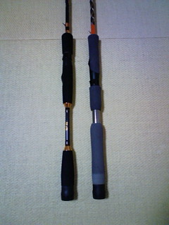 タイトルの通り、「良い子は決して真似しちゃいけないカスタム」を、自己満足の名のもとに行なってしまいました。では、ご覧下さい。この写真だけで違いが分かった人はモンスペマニアです。(笑)実は今回、以前に76SIGHTのカスタムでお世話になった「ジャンキーワークス」さんにお願いをして、84SHADOWと76SIGHTにエンドバランサーを装着してもらいました。出来るだけノーマルのイメージを残す為、エンドバランサーはFujiのEWBCをチョイスして、グリップがノーマルよりも長くならないようにグリップをカットし、全長を揃えています。もちろんノーマルの状態でも全く問題はないんですよ。ただ、シャクったあとでロッドを自然に構えている状態の時に、ロッドティップがより水平に近い状態が好きなんですよね。今使っている07’ステラ2500SDHを組み合わせると、どうしてもロッドティップが少しずつ下を向いてしまいます。かといって、もっと重量のある他のリールに買い換える訳にもいきませんので・・・。(汗)バランサーを装着しての感想は、まずロッドを縦にした重量がバランサーの分だけ重たくなりました。まぁ、当たり前ですが・・・。(笑)自然体でロッドを構えた時にも、本当にティップ部分を装着してないかのようなロッドバランスになり疲労感も軽減。前回のエギング釣行の際にも、サーフエギングで84SHADOWを使ってみたのですが、とてもシャクリ易くなっていましたね。※ もちろん、僕の個人的な感想である事を付け加えておきます。そして、もう一つのカスタムは、フックキーパーの取り付けです。色は84SHADOWに合わせてブラックにしました。このフックキーパー、他のモンスペには装着されているのに、何故か84SHADOWには装着されてないんですよね。これがあると車からポイントへ移動する際や、ポイント間を歩いて移動する時に、とても便利なんですよ。スレッドもRYOさんのセンスで、違和感のない仕上がりになりました。以上、「良い子は決して真似しちゃいけないカスタム」でした。にほんブログ村