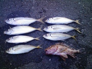 土曜日の夜から日曜日の朝にかけて、同じ愛媛に住んでいるこの方と、初めてコラボ釣行してきました。今回、せっかくのコラボなので、2人でポイントの選択に頭を悩ませたのですが、鮫さんのホームも、僕のホームもイマイチという事で、鮫さんが行った事がないエリアからスタートする事に決定!!最初のポイントで待ち合わせをして、鮫さんとご対面です。珍しいお土産、収穫したばかりで乾燥をさせていない、超新鮮なニンニクです。軽く挨拶を交わして早速アジングを開始しますが・・・渋すぎます。このポイントでは僕が豆アジを1本釣っただけで終了。2箇所目のポイントにはイカの餌師さんが居たのですが、なんとか2人分の釣り座は確保出来そうです。以前、このポイントに入った時は、まずまずの釣果でしたが、やはりここも渋い・・・。時々アタリはあるのですがフッキングするには至らず、鮫さんが25cmのアジを釣っただけで終了。次のポイントに向かいます。僕は初めてアジングをするポイントですが、開始するとすぐにゼンゴサイズのアジをGET。鮫さんも同じようなサイズのアジをGETしたのですが、この頃から風が強くなり、雨も降ってきたので撤収を決意。ダメもとで僕のホームへ大きくポイント移動です。途中のコンビニでで眠気覚ましのコーヒーブレイク。僕のホームに到着すると、風も穏やかで潮も動いていて、なかなか良い感じです。鮫さんにポイントの特徴を簡単に説明してスタート。ちょっとクセがあるので難しいポイントなのですが、鮫さんが体高のある27cmのアジをGETしますが、単発で再現性がなく、僕にはアタリすらありません。根掛かりを覚悟で沖のボトムを攻めると、待望のアタリが。一瞬アジかなと思ったのですが、トルクのある引きだけで走る感じではありません。途中で何回か根に入られそうになりながら、上がってきたのは25cmのガッシーでした。このあと夜が明け始め、薄っすらと周囲が明るくなり始めたので、アジングはここで終了。本当は、試したい事がいろいろあったのですが、ゼンゴサイズを1本では何もする事が出来ず、不完全燃焼のアジングでした。次回は、コラボ釣行 エギング編をお送りします。ロッド Tict×ウエダ 4S-611EXリール 07'ステラC2000Sライン DAIWA 月下美人 月ノ響 0.4号リーダー 東レ バウオ スーパーハードプレミアムプラスハイグレード 6ポンドワーム C.C.Bait's アジソフト3インチ 各色ジグヘッド C.C.Bait's アジタブレット 0.2gにほんブログ村