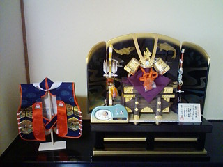 今年のGWは釣りに行かず、家族サービスを満喫すると決めた(約束させられた??)ので、その模様を日記にしてみようと思います。まず初日。子供の日に嫁さんに実家に遊びに行く予定にしているので、爺ちゃん婆ちゃんの為に初節句の記念撮影。兜飾りは、嫁さんの両親からのプレゼント、桃太郎の衣装は、僕の両親からのプレゼントです。息子のご機嫌が良い時を見計らって桃太郎に変身です。ハチマキを嫌がるかなぁ・・・と心配でしたが、なんとか無事に写真を撮ることが出来ました。結構ご機嫌な、桃太郎姿の悠史です。(笑)親バカですが、とっても似合ってると思います。(笑)しかし、この直後、写真の撮られすぎで嫌になってきたのか、暴れ始めました。(爆)という事で、これにて終了!!あとは家の片付けをしたり、畑の世話をしたりと、のんびりとした一日を過ごしました。二日目に続く・・・にほんブログ村
