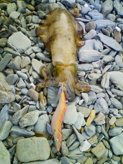 さてさて、夜明けと共にアジングを不完全燃焼で終了し、せっかくなのでエギングをしようという話に。鮫さんはこっち方面での釣行が少ないのでポイントの選択を委ねられますが、もともと引き出しの少ない僕は悩みます。悩みます。悩みます。悩みます。悩みます。悩みます。鮫さんに、「そんなに悩まなくても・・・。」と言われても悩みます。(笑)結局、少ない引き出しの中から、春に入った事はないのですが、秋にはホゲッた事がないエリアを選択して移動します。ポイントに到着すると、良さそうな防波堤や波戸は人だらけ。まぁ、予想していた事ではあるのですが・・・。(笑)入りたかった防波堤にも人が入っているのが確認出来たので、以前からサーフエギングをしてみたかったポイントに進路変更。到着するとエギンガーの姿はなく、完全に貸し切り状態です。(笑)ゴロタ浜のサーフですが、所々に藻の存在も確認出来ますし、潮も効いる上に風裏になっていて、これでイカが居れば完璧です。僕も鮫さんも、このシチュエーションにテンションアップ!!ベイトも確認出来たので、鮫さんはジギングをやってみる事に。僕は伝家の宝刀「モンスペ84SHADOW」でエギング開始。その1投目、ボトムから小刻みに3回シャクってフリーフォール。次のシャクりで「グンッ」とロッドが曲がります。あーあ、根掛かったぁっと思ったら、ちょっとだけクィンクィンしてます。(笑)ドラグも出ませんが、サーフなので慎重にやり取りを楽しみながら上がってきたのは、18cm 250g 餌木猿 松スペシャロー ピンク/金テープ久し振りのアオリちゃんです。やっぱ小さくても釣れると嬉しいですね。(笑)次々とポイントを小さく移動しながらキャストを繰り返していると、何故だか分かりませんが、そこにアオリが居るような感覚に・・・。ただなんとなくですが、本当にアオリが居るような気がしたんです。(笑)ここで「必殺!! 餌木猿スーパーシャロー」と言いたかったのですが、僕の手元にあるはずもなく、その代わりに以前ブログでも紹介をした子猿(松スペ 3.0号)に餌木をチェンジ。そして、その1投目、やっぱり小さく3回シャクってフリーフォール。その途中、ラインがスッと引っ張られます。落ち着いて少しタメてからフッキング!!グイングインしちゃってます。(笑)でもドラグは出て行きませんね・・・。こんなサイズでも楽しませてくれる「モンスペ84SHADOW」は、やっぱり良いロッドです。そして上がってきたのは、20cm 330g 餌木猿 松スペ3.0号 ピンク/赤テープこのあと、残念ながら小猿は帰らぬ猿に・・・。(涙)まだまだ釣れそうな雰囲気だったので、気合いを入れて歩きます。この時点で一睡もしないまま24時間が経過してました。(笑)小移動を繰り返していると、明らかに良さそうな潮目を発見!!キャストして、またもや小さく3回シャクってフリーフォール。なんとなく違和感を感じたのでフッキングすると・・・グイン、グイン、ジーーー、グイン、ジーーー、ジーーー、ジーーー。ゆるゆるドラグがちょっとだけ出て行ってます。この瞬間がたまらなく好きです。(笑)潮の流れにイカが乗っているのか、サイズの割りによく引きましたが、ロッドでためていると沖でポッカリ浮いてきました。あとは慎重にイカを誘導して、23cm 450g 餌木猿 松スペシャロー ピンク/金テープ食べ頃サイズに癒されました。(笑)このあと、同じエリアにある波戸に移動しアオリを狙いますが生命反応はなく、目の前を悠々と泳ぐアジに馬鹿にされて終了!!体力の限界です。(爆)残念ながら鮫さんにジギング&エギングでの釣果はありませんでしたが、ポイントのシチュエーションが気にって貰えたみたいで、近いうちにリベンジに行くそうです。(笑)鮫さん、今回はお疲れ様でした。またコラボしましょうね。以上、コラボ釣行 エギング編でした。ロッド モンスペ84SHADOWリール 07'ステラ2500Sライン 東レ ソラロームPE 0.6号リーダー DAIWA エメラルダス リーダー 2.5号餌木 餌木猿 松スペシャロー ピンク/金テープ 餌木猿 松スペ3.0号 ピンク/赤