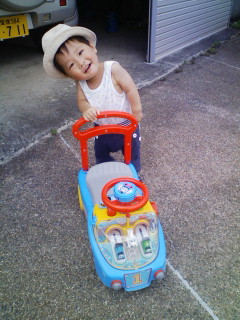 久し振りの連休にも関わらず子供と遊びすぎてしまい、想像以上に疲れてしまったリャンチーです。(笑)連休初日の午前中は天気も良かったので、子供と一緒に自宅の庭でトーマスの手押し車で歩く練習です。その途中、どうしても子供の写真が撮りたくなってしまい携帯のカメラで撮影したなかのベストショットがこちら。自分で言うのも恥ずかしいのですが、めっちゃ可愛いでしょ。(笑)このあとは庭でプールをして遊んだり、一緒にお昼寝をしたり、疲れを忘れるくらい子供と一緒に過ごして癒されました。連休明けも、相変わらず仕事は忙しさを増す一方なのですが、我慢の限界なので、今週末は海でお魚さんに癒されて来ますね。にほんブログ村