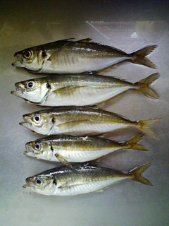 お盆休みの初日、13日の夜~14日の明け方にかけてアジングに行ってきました。いつもは単独釣行が多いのですが、この日はバスに嵌まっていた頃の仲間2人と一緒です。まず最初に入ったいつものポイントは思ったよりも潮位が高いので、僕と高松の釣りバカはウェーディング、松山の釣りバカは他の漁港でアジングを開始。その1投目、Mキャロ7.5gでボトム付近をサーチすると小気味良いアタリを感じてフッキング。隣で高松の釣りバカもアジをかけてWヒットです。僕のアジは20cmちょいですが、高松の釣りバカのアジは25cmはありそうなので期待が持てますね。そしてそのあと、2投目・・・・・アジGET!3投目・・・・・アジGET!!4投目・・・・・アジGET!!!今日は楽勝かなと思ったのですが、5投目以降はシーーーーーーーーンと沈黙です。(笑)タナを変えながら探っていると、中層でアタリがありフッキング!!刻々と変化するアジのタナに翻弄されながら20cm前後のアジを追加。少し沖でライズがあったのでジグヘッド単体で直撃すると着水と同時にヒットし、この日一番の25cmのアジをGETしました。もう少しこのポイントで粘りたかったのですが、潮位も高くなったのでポイントを移動。松山の釣りバカとも合流し2箇所目のポイントに向かいます。2箇所目のポイントは実績があるポイントなのですが、誰もアジをGET出来なかったので省略。(笑)この時点で松山の釣りバカのクーラーに、まだアジが入っていない事に気が付きました。なんとかアジングの楽しさを味わって欲しいという気持ちで3箇所目のポイントへ移動。しかし、そこに待ち受けていたのは、あるはずの照明が全て消えている真っ暗なポイント。(爆)唯一の照明の下には餌師の家族連れが陣取っています。仕方なく真っ暗な海にキャストしますが、予想通りのノー感じ。餌師の方に声をかけて、邪魔にならないようにMキャロの4gでサーチするとアジがヒット。サビキの家族連れより大きい20cmちょいのアジです。ここで高松の釣りバカは翌朝も釣りに行くという事で撤収。このあと、2人で同じエリアのポイントを少しずつ移動しながら松山の釣りバカもアジをGET。どうやらコツを掴んだらしく、ポツポツをアジを追加していきます。そうこうしている間に時刻はAM2:30をまわり、体力の限界かなぁって思っていると、消えていたはずの照明が復活しました。その数分後、静まり返っていた海面にライズが発生し、体力の限界を忘れてまたキャストしている自分の姿が。(爆)最初はジグヘッド単体で狙っていたのですが、いまいち反応が悪いのでMキャロ4gに変更して水面直下を通してやるとすぐに答えが出ました。サイズは20cm前後ですが、約30分程で10本のアジを追加し終了。家に帰って数えてみるとご覧のような釣果でした。アジ 25cm~18cm 29本チビタッチー 1本14日は実家に帰ったので、皆で美味しく頂きましたよ。(笑)久し振りに昔の仲間と一緒に釣行しましたが、やはり気心の知れた仲間との釣行は楽しいですね。〈タックル〉ロッド TICT 4S-611EXリール 07'ステラ C2000Sライン DAIWA 月下美人 月ノ響0.4号リーダー 東レ バウオ スーパーハードプレミアムプラスハイグレード 6ポンドワーム C.C.Bait's アジソフト3インチ グローピンク&クリアラメキャロ Mキャロ 7.5g 4.0gジグヘッド C.C.Bait's アジタブレット 0.2gロッド ラグゼ コーストラインAJ S610ML-solid.Fリール 07'ステラ 1000PGSDH(C2000Sスプール)ライン 東レ バウオ スーパーハードスーパーフィネス 2ポンドワーム C.C.Bait's アジソフト3インチ(1.5節カット)グローピンク&クリアラメジグヘッド 尺ヘッド(Dタイプ)1.5g&2.0gにほんブログ村