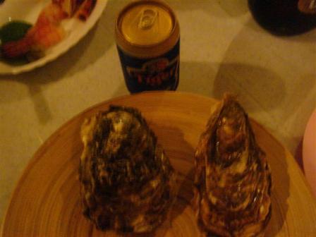 少し遅くなったけど、この前の日曜日に食した牡蠣。岩手県は赤崎というところの、なかなか一般的にはお口に入らない貴重な牡蠣。(らしい)勿論、マレーシアにやってきたのは今回が初めて。サーが輸入したので、少しだけおすそ分けしてもらいました。 ちなみにワタシはちらりと焼いたレアでいただくのが好みなので七輪でさっと焼いてみましたが少し縮んだ状態でこの大きさ。岩牡蠣のように、殻は大きいけど身の大きさそのものはたいした普通の牡蠣と変わらないものと違ってこれは、殻の中ぴちぴちに、ぷりんぷりんに身が詰まっているの。一つ食べるともうお腹がいっぱい。お味?勿論美味しゅうございましたよ。ワタシは、クリーミィでまったりとした。。。だのお品の良い食感が舌にとろける。。。だのそういう食通的な表現は出来ないの。美味しい。ウン。それだけかな。まさしく、口福の時でありました。