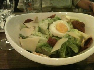 昨日スーパーでお買い物をしていつものように、ワインを選びレジに並んだ。並びながら、なんとな~~~く手持ちの現金が足りないような気がしたのでワインは買わずに返した。お金が足りなかっただけでなくって来週のベリーダンスのショーまでまた前回のように、イマイチ感を残さないようにワイン断ちをしようと思った。願掛けもたった1週間だし、続くはずだった。・・・が、しかしそおゆう時に限って、サーから、晩ごはんお誘いの電話。そおゆう時に限って、イタリアンっっ一応話したのよ。「ワイン止めようかと思ってる。」って。でも、「キミがワインを止めるなんてありえない。」だって~~~。よ~~く分かってらっしゃる。で、行ってきました。ホントは、マレーシア一美味しいと信じているお店に行きたかったのだけど娘のフラメンコのレッスンが終わるまでに戻らなければいけなかったので家の比較的近くに、新しくオープンしたレストランへ。 まずはシーザーサラダでしょ。なんか、奥のジョッキやワイングラスと比べてもやたらにでかい。正直、これはでかいだけ。お味は、述べる必要すらない。 でもってサーの大好きなピザでしょ~。マッシュルームとビーフベーコンってやつだった。思わず、奥のサーと手前のワタシ、写真撮る前に手が出てしまったほど、美味しそうだった。わが家好みのちょー薄生地。 そして、これも定番マリナーラ。新入りらしきウエイトレスのおネェちゃんがテーブルに置く時に、お皿をかしげて、思わず、パスタが、ずりっと斜めってしまって。。。お皿に、ソースのあとがついておりやす。うん。次は娘も連れてきてやろうねって、サーとワタシ。悪くないお店でした。ワイン?もちろんいただきましたけど二人で1本だもの~~~~呑んでないようなものじゃなぁ~い?
