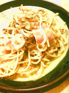 昨日サーがワタシのごはんが食べたいと言ったのは『匠』@サーの焼き肉屋さんにはサーのビジネスパートナーたちが集まり酒盛りを開催していたからとのこと。サーは参加したくなかったので逃げの手口として「家で食べる」と言った。。。勿論、焼き肉屋で顔を合わせてしまえばその酒盛りには、サーのみならずワタシも参加せねばならないワケでそれは日本人の誰も想像だにしないそれはそれは過酷で壮絶な呑み会なワケでただでさえ、今月末に待ち構える怖ろしき旧正月に備え今は肝臓にゆっくりと休養を与えとるというに。。。こんなとこで、せっかく温存してある肝臓機能を無駄に消耗する訳にはいかない。なんとしてでも、ここは避けて通りたい。と、いうワケなので、ワタシもめんどくさいな~~と言いつつ何もない冷蔵庫と相談しながら、晩ごはんを作った次第。常備してある生クリームとバター。お助け食材の宝庫、冷凍庫には欠かさないベーコン。かろうじて野菜庫にあった、年末のすき焼きの残りのブラウンエノキ。やっぱりすき焼きの残りのお高い玉ねぎ。で、カルボナーラ。でもって、こちらは全て、お助け冷凍庫からの食材たち。パン粉、ホタテに松茸松茸。。。が常備されてるうちってどうよハーブとお塩を混ぜたパン粉を、ホタテと松茸にからめてバターとオリーブオイルを散らして焼いただけ。後は、年末に作ったチャーシューと身欠きニシンの甘露煮を出した。ちなみにうちの家族。。。こうゆう食事は好きくないいかにも手抜きのような時短のような即席にとりあえず一品仕上げました的なお料理。。。だって、30分程度しか時間なかったんだもん。こんなもんしかできないべさ。ホント。。。贅沢で困るわ、うちのメンバーちなみにね、うちのお助け冷凍庫には、他に、ウナギのかば焼き、イカソーメン、フカヒレ、タラバガニに松葉ガニ筋子、たらこ、数の子、とびっこ、キャぁ~~。。。魚卵研究会だわ。。。などがあったのよ。みなさんなら、他にどんなお料理を作るでしょうか。エスニック、フレンチ、イタリアン、スパニッシュ、韓国風も中華風も、一切なしでお考えください。わが家はひたすら「和」な食卓である~~ちなみついでに、こんな思いまでして避けた、怒涛の酒盛り。結局断りきれずに、サーは行ってしまったのだ~~~。だったら焼き肉食べ行っとけばよかった。。。