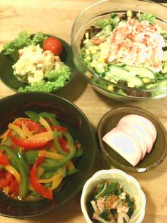 久しぶりに、きちんとお料理が出来た日。食材も、ちゃんとまともなモノがスーパーに並んでたし。(ずっと年末の残りの腐りかけばかり売っていた)サーが、会社から食材を忘れないで持ってきてくれた。実はこれはわが家にとって大変貴重でマレーシアって、たとえば、海老を買って家に只まっすぐ帰ってきてパック空けたらすごいニオイ~、とか(つまり途中で腐った訳じゃないってことね)海苔を買って、袋を開けたら湿気ててふにゃふにゃ、とかその日の運勢が決まったりするお買い物はギャンブルだから、サーが業務用にレストランに卸している安心安全な食材を、会社から買ってきてもらうのが一番確実ってワケなのね。サーさえ忘れなければ基本的に、事足りる。エビフライを予定していた日にエビ忘れられると、おかずが無くなったりするのがたまに傷で、昨晩のわが家の食卓。ポテトサラダかにサラダ3色パプリカの白だしきんぴらピンクのかまぼこかまぼことホウレン草の胡麻和え久々だわ~。彩りがきれいメインはこちら。サーには、赤魚とカラスカレイの味噌漬け娘用に、なんだっけね、これ。下にハンバーグの種で、上にマッシュポテト。で、焼く。いつも実家の母が作ってくれてて、その頃は確かちゃんと名前があった。全然思い出せないんだけど。誰か知っていたら教えて。ワタシのメイン?ないよね。いや、昨日は独り占め。せっせせっせとカニ剥きましたし、このために。棒棒鶏に使った節約ダレではなくって練りゴマから作った、ゴマドレでおす。フラメンコのレッスンが激しかったのですごぉ~~くおなかが空いていてほとんど一人で食べちゃいましたよ。娘のお弁当も、少し大きめのお弁当箱を買ったのでやっとワタシのやる気が出てきた昨日のパプリカそのために多めに作った。昨日のかまぼこ写真撮影用ね。娘は食べない。昨日のマッシュポテトポテトは大好き。何でもいいからポテトは入る。エビフライサーが忘れなかったエビ。ささみdeざんぎ最近お気に入りのささみのざんぎ。青のりの卵焼き歯にくっつかない高級青のり使用。あれ?やる気出てきた、とか言ってて昨日の残りばっかりじゃんでもまあ、わが家、一気に食材の宝庫になりましたのでしばらくお料理が楽しくなりそうどなたでも、どんっと食べにいらっしゃい。