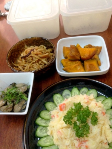 今週から作り始めているお弁当。お弁当作りなんか、プロの仕出し屋だった頃も含めて20年以上になりますからお弁当なんかちょちょいのちょい。なはずなんです。だけど、なんだかどうにも、うまくいかない。朝9時に家を出るふたりの朝ごはんも含め6時半から起きてるのにそれでも、毎朝あたふたしてる。ご飯の量もよく分かんなくて。娘が離れて暮らすようになって老夫婦ふたりが残されて食べるものも限られていれば食べる量もほんの少しでそんな生活に慣れてしまっていたからなんだか今すんごぉい大量の食料を用意している気になっている。1週間に1度の買い物で全然足りていたはずなのに木曜の今日にはもう足りなくて、朝から買い物に行った。平日のスーパーマーケットって空いてるなあ、なんて。1年前のことが、既に忘却の彼方。色んなことが、父の死と同時にどさ~~っと、ワタシの中から抜け出てしまってまた新しくインプットするのに手こずっている。すごく疲れる。