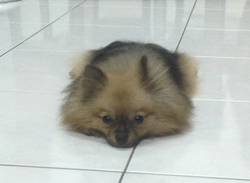 パーティーの時、みなさんが集まった時もどうも、ポーラのほうが人気が出てしまう。おばばすぅじぃは、基本喜怒哀楽を顔に出さないのですがポーラはこう。そのピザちょうだぁああ~~い!!!ちょうだいく・く・くぅぅださいと、こっちは反応もせずに見ているだけなのに一人芝居をしてくれる。やっぱり、無表情よりは面白い。そうかと思うと昨夜はこう。しょぼぉぉぉぉんおねえちゃん=娘、のお部屋で寝たかったのに。おばさん=ワタシ、のお部屋に連れてこられた直後。背中に漂うがっかりオーラに、かなりウケた。分かりやすいったらない犬。最近、娘がパパと一緒に出勤するようになってからは運転手が、ピンポ~んと門の呼び鈴を鳴らす直前に察知して「あ。もう出かけるんだ。」と判断。ワタシに、いつもの「お願い攻撃」をしてつまり、この場合「抱っこのお願い」をしてワタシに抱っこをさせる。で、抱っこして、ワタシと一緒に、車で出て行く二人を見送る。そんな朝。オーラどころか、意思表示。昔、ワンコが何を考えているのかわかる「ばうりんがる」というおもちゃ?機器?があった。以前の犬たちの時は欲しいと思ったけどぽーちゃんは、チョー分かりやすいので全然必要ないですね。