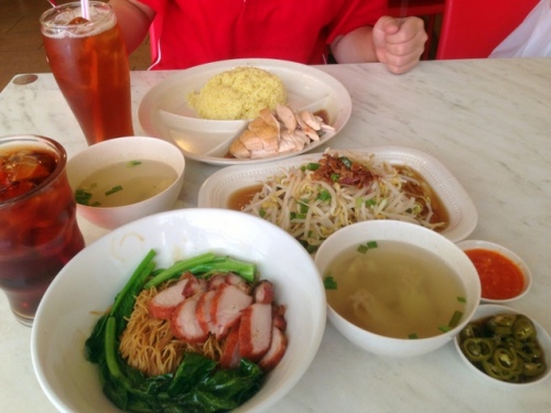 今月いっぱいサーの会社で丁稚奉公する娘。サーの跡目継ぐ者としてすべての部所での修行を命じられています。今日は、スーパーマーケットでの野菜と果物のパッキング作業。マレーシアの主要なスーパーマーケットには、サーの会社専用の棚があり季節のないマレーシアにあって、四季折々の日本の野菜と果物が買える日本人だけでなく最近はローカルの人たちからも支持を集める会社でも主軸になりつつある成長分野ですからパッキングという地味な作業も、また大事な経験の一つです。とはいっても、スーパーマーケットの裏でずっと立ちっパの仕事。冷房が効いていてとても寒いし、案外過酷な労働です。そんなわけで、ちょいと気になったりする母。ちょうど近所でフェイシャルだったので昼どき拉致ってランチに連れてってやりました。手前がワタシの、ワンタンヌードルで奥側が、娘の大好きなチキンライスこのあとワタシは家に帰ってきましたが娘はまた会社に戻って、お仕事の続きなんだそう。チキンライス食べたから今頃頑張って働いているでしょう。