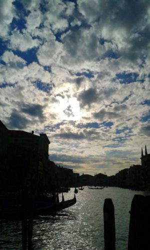 昨日遅くに、お友達から送られてきた画像。ベネチアでお友達になった人。夕方5時仕事帰りに、ふと立ち止まって撮ってみたんだそうな。思わず、「どこの写真?」と訊いてしまったよ。だって、ワタシが見たベネチアの空は雲なんかひとっつもない、真夏のキラッキラの空。へえ。ベネチアの空も、秋にはこんな顔するんだね。どことなくロマンティックで、これも又素敵だな、なんて思ってしまう。空を映し出す水面(ミナモ)、キャナルに続く空。素敵なものは、自分の目で見たくなってしまうからおいおい。そりゃ無理だろ又サーを一人ぼっちにはできないよ。と、沸き上がる心を戒める。サーが「行って来いよ。」と言ったから、特に興味もなく行った割りにあの水の都は、妖しい毒でまた来いよと誘うのだ。「アイールの空も送ってよ。」え?いいんですか?マレーシアのお空っちゃ、今ヘイズひどくってねこんなですけど~~~さすがに、ベネチアの秋空の後じゃ、これ無粋すぎっしょね~。空がきれいになったら、送ることにしましょっと。あなたのお空は、今どんな顔をしていますか?