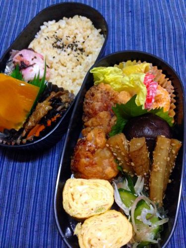 昨晩、日曜日はほとんど出かけないサーがお誘いを受けて食事に出ていきまして。ワタシってば、晩ごはんの支度解放~~で、自由よぉ~~だったはずがなんだか暇で結局一人で夜遅くまで、せっせとお惣菜作りをしてしまいましたの。なので、今日のお弁当は2段。だって、おかずが入りきらない結局こんなんなってしまいましたミックスパスタのサラダ念願のザンギ干しシイタケの含め煮たたきゴボウ長ネギの卵焼きキュウリとみょうがのシラス和えかぼちゃの煮たのひじき煮カブの梅しそ和えすごく自慢なんですが、これのし・包装・メッセージカード 無料!!【正規品】Padonni|パドンニ パレードギフト(PR-02)...価格:2,160円(税込、送料別)イタリアで買ってきた、カラフルなショートパスタ。すごくお弁当向けだと思う~~おかずによって、赤っぽいのがほしい時は赤いパスタを上の方に飾って。黄色がほしい時は黄色。黒もあるし緑もある。お弁当の色が寂しい時には、もっと目立つように入れてみると華やか食べたくて食べたくて食べたかった念願のザンギもやっと作って。鶏の唐揚げのことを北海道ではザンギと呼びます。色々ちょっとづつおかずが余ったのでおまけに自分のお昼用にも詰めてみたのよン。ひょ~~~残りもの感は否めません~~でもな、こんなんでもなんだか嬉しい。お弁当~~