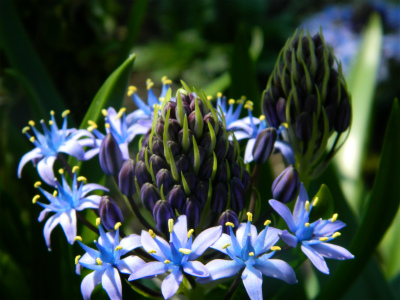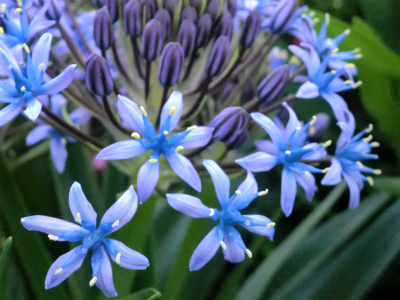 シラーベルビアナ 外側から花が咲いていき 満開より 今が一番きれいです 去年までは1つ今年は4つのつぼみがついて嬉しい ジャーマンアイリス ラベンダー オキザリス すずらん 暖かくなって花の成長が早く 毎日庭に出るのが楽しみです 午後から小雨が降り 少しひんやり
