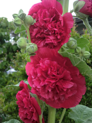 ルドベキア 今年もたくさん咲きました オキザリス ユリ アスチルベ 鉢植えで植え替えしなかったので 花数も少なくなってきました 今年は地植えにしました 八重のホリホック が咲きました 背が高くて目立ちます