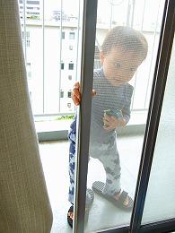 今日は夫が保育園のお迎えに行ってくれ、その後園のそばにある公園で遊んだらしいのですが・・・息子が遊んでいる滑り台にほかの子が近づいて来ようものなら「S(息子の名前)君が使ってる~」「S君が使ってるの~!」と威嚇し、全然順番を譲ろうとしなかったらしいのです。たまたまその相手が大きい子供達だったので、あきれて「もういいよ!」とほかの遊びに行ってしまったとの事ですが、2歳前ってこんなでいいのでしょうか?独占欲が出てきただけ?そういえばちょっと前までは、おやつでも「ママにちょうだい」と言えばすぐにくれたのに、「これS君のよ!」なんて言って、全然分けてくれなくなりました。車を抱えてベランダへ。この悪そうな表情を見よ!色々な歌を口ずさんでいます。旋律が怪しげなので、よ~く歌詞を聴いていないと判別がつかないです。お気に入りは「雨あめ降れふれ」「汽車ぽっぽ」「オモチャのチャチャチャ」「犬のお巡りさん」「どんぐりころころ」「猩々寺」「崖の上のポニョ」「たんたん誕生日」「カエルの歌」「チューリップの歌」などでしょうか。「カンカンカンカン電車がくるよ。カンカンカンカン電車がくるよ。 ゴトンゴトン・・・・」という歌も歌っているのですが、原曲がわかりません。こんな歌あるのかな?電車が好きだから適当に歌っているのかも。「緑の車」を覚えたら、今までちゃんとしゃべっていた「赤い車」「黄色いバス」が「赤いの車」「黄色いのバス」になってしまいました。一時期でしたが、日本語勉強中の外人みたいです。パパと公園に行くときに、見送りに出た私に向かって色々励ましてくれました。「行ってくるからね~。また帰ってくるからね~。頑張ってね。」って、これ私の出勤の時の台詞なのかなぁ?