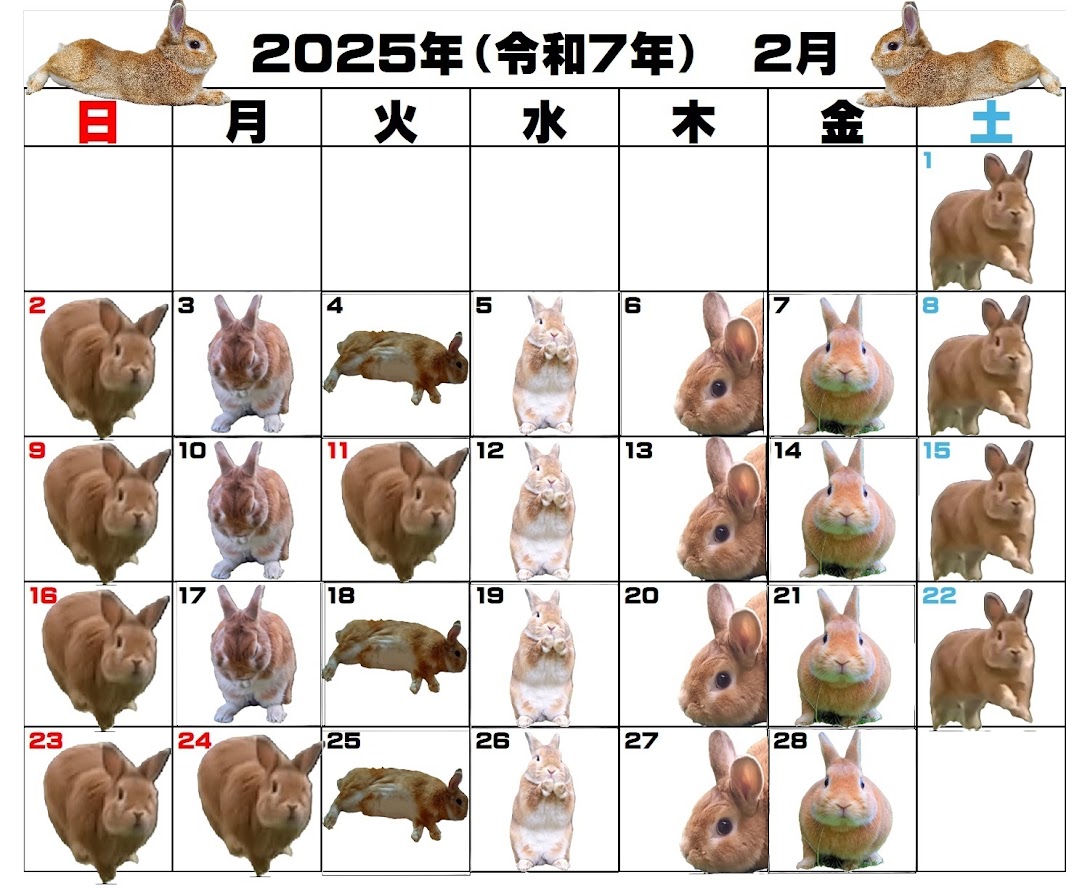 うさぎを飼って3年。うさぎの行動や仕草にすっかり魅了され、気づけば、あっちでパシャ、こっちでパシャ。いつの間に、うさぎの写真や動画を撮るのが趣味になっています。野良猫の追っかけ(!)の先輩に着想を得て、野良猫追っかけの先輩に刺激を受けた話我が家のモヒうさぎさんを題材に、カレンダーを作ってみました。普通のカレンダーは月ごとに、大きな画像1枚だと思いますが、なにせ、表情や動きが多彩なモヒうさぎさん。画像を1枚に絞ることができません。そんなこんなで、曜日ごとにモヒうさぎさんの仕草を厳選して作成。週初めの月曜日は、この1週間の仕事やうさんぽの計画を練るために悩み・祈るポーズを。火曜日はお疲れモードで(早くも)ちょっとお休みのポーズを。水曜日は前向きに提案するポーズを。木曜日はチロ目で本気になっていただきました。金曜日は1週間のまとめとして、振り返りをするために真正面から直視を。そして、土日祝日は、モヒうさぎさんと思う存分、うさんぽ(にわんぽ)したいので、躍動感あるモヒうさぎさんのランニングフォームを。てな具合で作成してみました。自己満足ですが、作っていて楽しかったので3月も作ろうかな!?