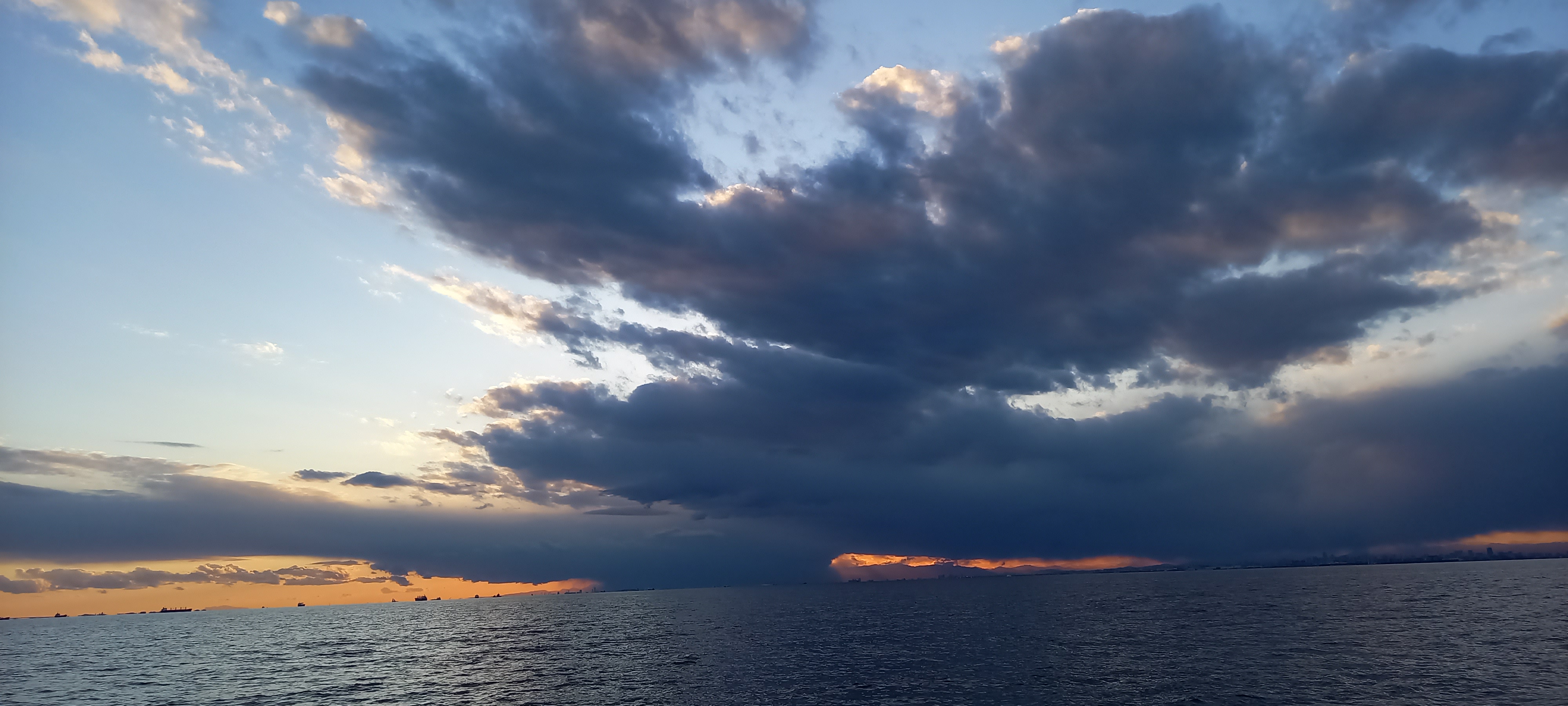 富士山のてっぺんに日が沈むダイアモンド富士。幕張から稲毛の海岸では、一年で一日だけ見ることのできるプラチナならぬダイアモンド風景。ダイアモンド富士(千葉市観光協会HP)で、行ってきました。もちろん、ランニングで。ランナーの端くれですから。稲毛海浜公園に到着!ところが、晴天なのに、富士山のところだけ雲が・・・。南や東は晴れているのに・・・ただ、その分、雲間から漏れる夕陽が燃えるようでした。海に伸びる桟橋、その名もThe Sunset Pierというだけあって、夕陽に映えること、映えること!大きな秋田犬との出会いも!実は、前世は犬だったのではと思うくらいの犬好きの僕。特に、ゴールデンリトリバーや柴犬が大好きで、ついつい寄っていってしまうんですよね。憧れの秋田犬との対面に嬉しくなり、頭やあごをナデナデさせていただきました。大きくて、立派だなー。ダイアモンド富士は見れなかったけど、素晴らしい夕暮れでした。