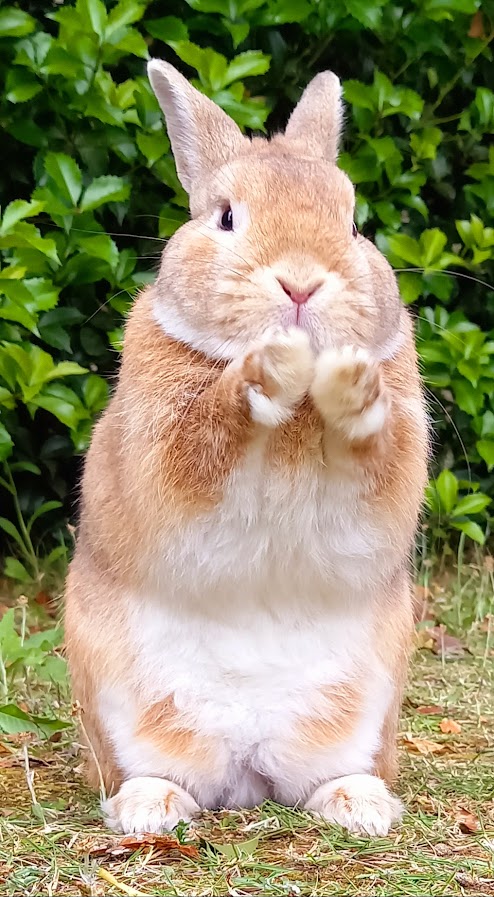 愛読書「うさぎのための最高のお世話」に、健やかなる時も病める時もうさぎを伴侶として・・・というくだりがありました。結婚みたいで大袈裟と思いつつ、野生から切り離され、飼い主しかつきあいのないうさぎにとっては、結婚以上に飼い主と濃密な時間を過ごすことになるのだと思いました。そう考えると責任重大。庭だけは広く(家はコンパクト)、部屋は片付いてない我が家では、うさんぽ=にわんぽとなります。そんなこんなで、1月6日に雨天でにわんぽを中止して以来、1月7日からにわんぽを継続中。なんと2月20日現在で44日連続にわんぽ!さすがに、うさぎや僕自身が病める時はにわんぽも休むつもりですが、残業の時も飲み会の時もうさぎを伴侶としてにわんぽしてます。それにしても、ここのところ夜は寒いっす。うさぎも僕も風邪をひかないようにしないとね。