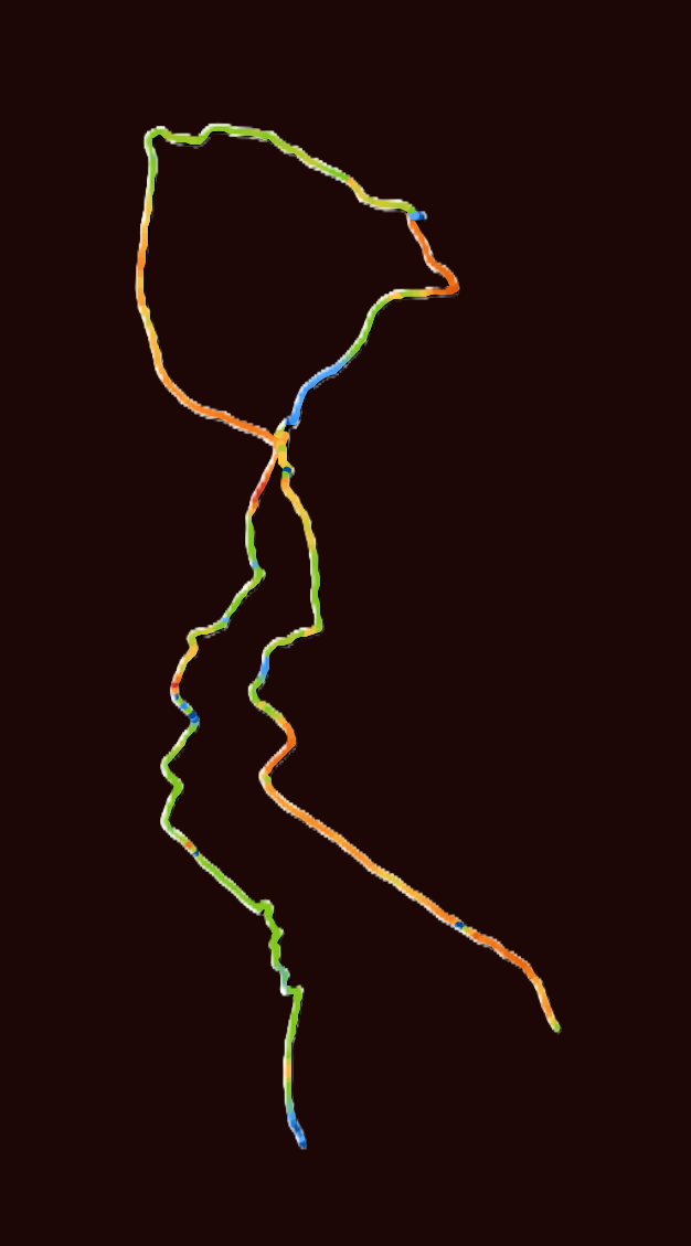 以前、ランナーズ誌のGPSの軌跡で絵を描くようにランニングされている方の記事に感心しました。ジョギングするなら、行きと帰りと違う風景を見て走りたいものです。そこで今日は、GPS軌跡の初心者として、8の字の軌跡を描くことを目指して走ってみましたよん。月始めの月例お詣りジョグ。雨が上がったのを確認して、午後からスタートです。右脚の踵はようやく癒えてきましたが、それでも6kmすぎから痛みが出ます。足裏がひっぱられるような、ねじれるような感覚。踵というよりも、原因は足底腱膜炎かもしれません。タオルギャザーやアキレス腱伸ばしが必要かも。ちょっと意識して心がけようと思います。帰りは、コースの軌跡が八の字コースを意識して、支川都川に沿って走りました。ガーミンのGPSの軌跡はこのとおり。八の字がつながっていないのは、ゴールのご褒美にカフェオレが飲みたくなり、ローソンでゴールしてしまったため・・・。誘惑に負けました。完全な8の字は次回に持ち越しということで。