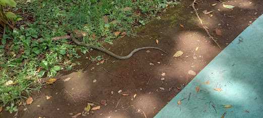 千葉の田舎で育ったので、大抵の自然のものは平気なのだけれども、ヌルヌルしたものを掴むのには躊躇する。カエル、そして、最も苦手なのがヘビ!この日のランニング。月例の三寺社詣りのランニング。涼を求めて、いつものコースから木立に囲まれたコースに進路を取ったのがいけなかったのか。途中までは、森の中の小道で快適だったが、下草たっぷりの藪漕ぎコースに変わり。そして、なにかベタッとしたものが、ふくらはぎにあたった!?思わず「ヒャァー!」と奇声を発し、ふくらはぎについた異物を手で払って、一目散に逃げだした。この時(ほんの10m)ばかりは、キロ3分を切る、一流選手並みのラップタイムを刻んでいたに違いない。あの異物はなんだったのか?ヘビ?大きなミミズ?異物がはりついたふくらはぎ部分は、ヘビやミミズがはりついた場合のヌメヌメとした感触は残っておらず、どうも、濡れた枯草がついただけだったような気がする。とはいえ、しばらく、回り道をしても草ぼうぼうのところには、近づかないようにしようと思う。画像は、昨年、千葉大学西千葉キャンパスで遭遇したアオダイショウ。こんなのに遭遇したらと思うと・・・
