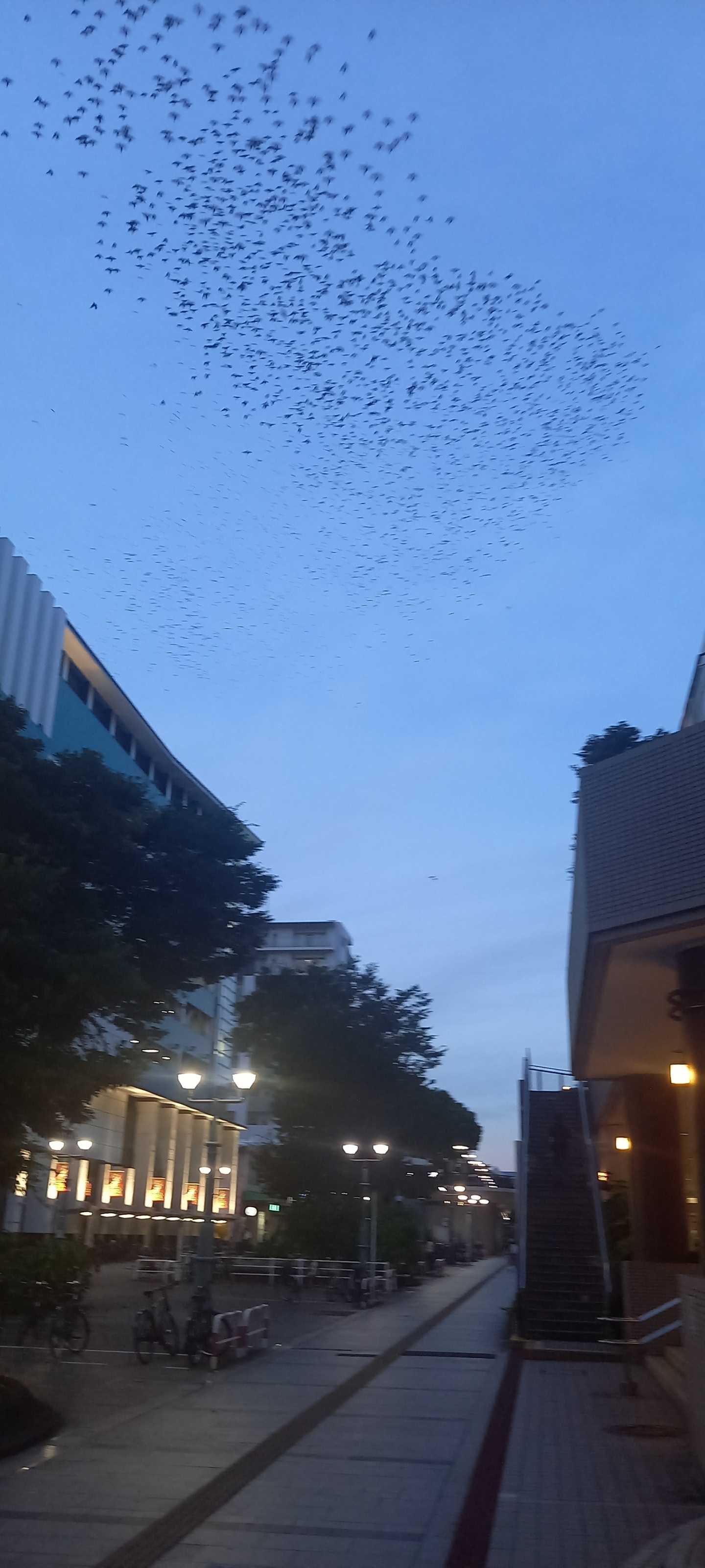 娘が小学生だった頃、夏休みの自由研究の参考に、優秀作品展を見に行ったことがある。そこで、目を見張ったのが、セミの抜け殻を収集・整理した作品。クッキー缶の縦軸が、セミの種類(ニイニイゼミ、アブラゼミ、ミンミンゼミ)、横軸が時期(7月上旬・中旬・下旬、8月上旬)で、12のマトリックスに仕切られて、それぞれ、セミの抜け殻が区分されて納められていた。7月上旬は、ニイニイゼミの抜け殻がはみ出さんばかりに収められ、7月下旬には、今度はアブラゼミの抜け殻がこんもりと盛り上がっていた。ちなみに、出展者はおゆみ野っ子。自然の多い地の利を生かしたフィールドワークに、「その手があったか!」とうなったものだった。おゆみ野住民は、セミの鳴き声でも夏を実感する。遊歩道はセミの声のシャワー。ニイニイゼミの ジジジジジジ・・・、アブラゼミの ジリジリジリ・・・・、という鳴き声を聞くと、ついつい樹々を見上げ、セミの姿を探してしまう。ところが、ある日、重大なことに気づいた。駅前では、ジジジジジジという鳴き声は聞こえても、ジジジリジリジリという音はしないのだ。駅前にはアブラゼミがいない!これは、どうしたことだろう。駅前は、ほぼコンクリートで舗装されていて、幼虫が過ごす土の部分がないからなのか?いやいや、ニイニイゼミだけがジジジジジジと鳴いているからそんなわけはない。実は、駅前には、夕方になるとニイニイゼミの鳴き声をかき消すくらい、ムクドリが集まってくる。昔見た、ヒッチコック監督の「鳥」という映画さながらの凄まじいばかりの数で、この群れの中に放り込まれたら、ただでは済むまいと思われるほどの迫力なのだ。ひょっとしたら、アブラゼミは羽化するタイミングで、ムクドリたちの餌食になってしまっているのではないか。ニイニイゼミが、小型で樹の幹と同化した色をしている一方で、アブラゼミは、大型で黒々としてすぐに見つかってしまいそうだ。そんなわけで、アブラゼミばかりが、ムクドリの縄張りでは食べつくされてしまったのではないか。そんな仮説を立ててみた。この夏、この仮説が正しいかどうか、ランニングや散歩中、折に触れて確認していこうと思う。2025年夏、オジサンの夏休みの自由研究のテーマが決まった!しばらく、セミの鳴き声に耳を傾け、セミの姿を求めることが続きそうだ。この仮説について、セミの抜け殻を収集・整理した少年とも意見交換してみたいものである。少年は、オジサンの仮説について、どう思うであろうか。