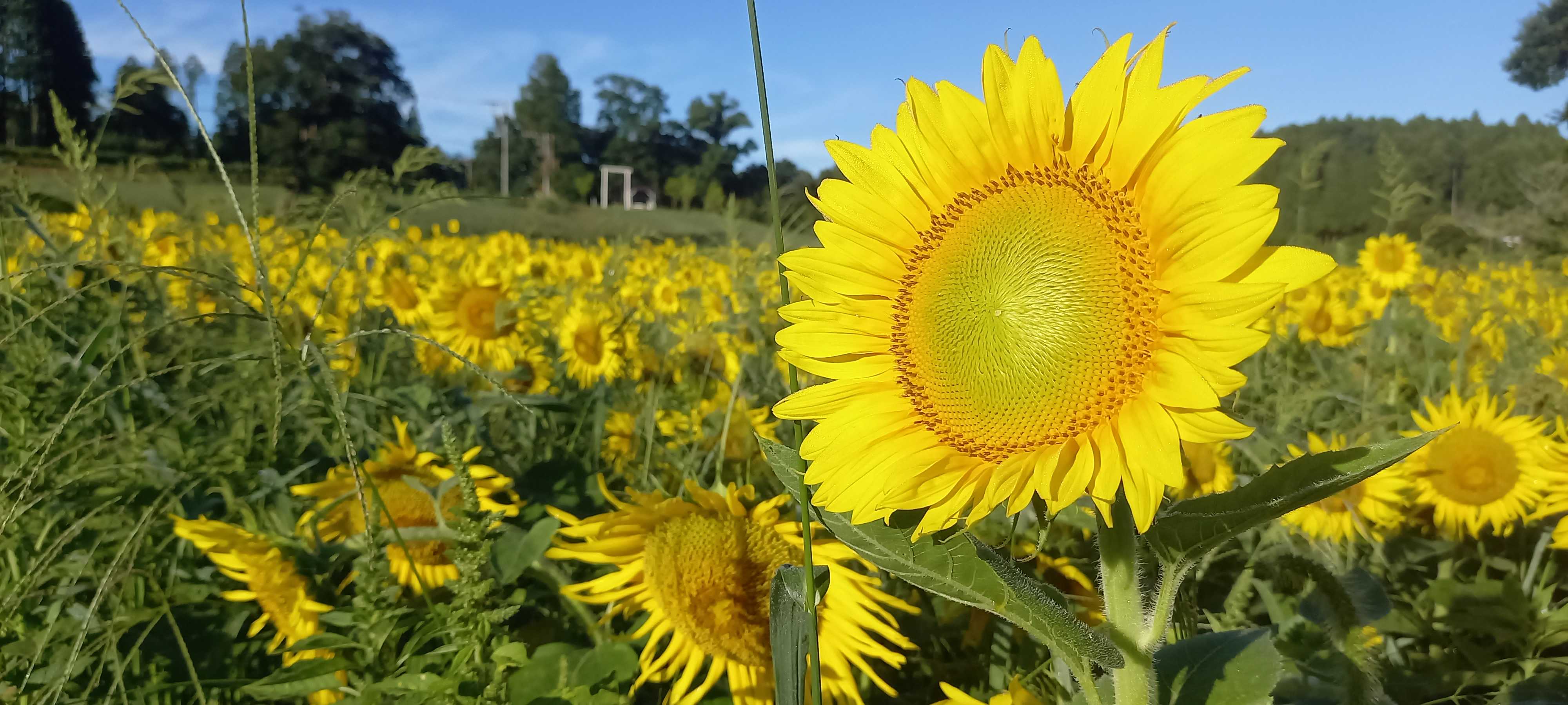 そろそろ、みつばち牧場のヒマワリの時期では?と思い立ち、ひとっ走り。暑いので、高田付近でショートカットして最短ルートで。舗装されてはいるが、車1台通れない、森の中の1本道。ヘビやイノシシの気配に怯えながら、そぉーと通る。どころが、この道、恐ろしいほどに涼しい。周りの気温よりも2~3℃は涼しいのではないか。深い森で、1日中日陰なのだろう。冷気が溜まっている。そして、両脇の森から時折吹いてくる風が涼やかだ。みつばち牧場に到着。周りのヒマワリこそ開花前だが、ゲート付近のヒマワリは今が盛り。ゲート右側が背の高いヒマワリ、左側がやや小さなヒマワリ。そして、ヒマワリに囲まれるように真ん中の道が通っている。黄色い大輪の花が太陽に向かって元気よく咲いている様は、見ていて気持ちがいい。その元気は、夏生まれの我が娘にも通ずるような。これからも、ヒマワリのように明るく快活な人生を送って欲しいと願う。丘に登ってみると、テラスには風鈴のトンネルが。一斉に揺れて、涼やかな音色を奏でている、これだから日本の夏はいい!と思っている矢先・・・キャンプ場付近でブヨの群れにまとわりつかれる。こいつは厄介者。刺されたら大変なのだが、おまけにしつこい。キロ5分30秒くらいだと、平気でまとわりついて並走してくる。せっかくののんびりジョグだったのに、ペースを上げてようやく振り切る。これだから、日本の蒸し暑い夏は嫌だ!日本の夏の功罪、両面を味わった、2025年のある日のジョグでした。