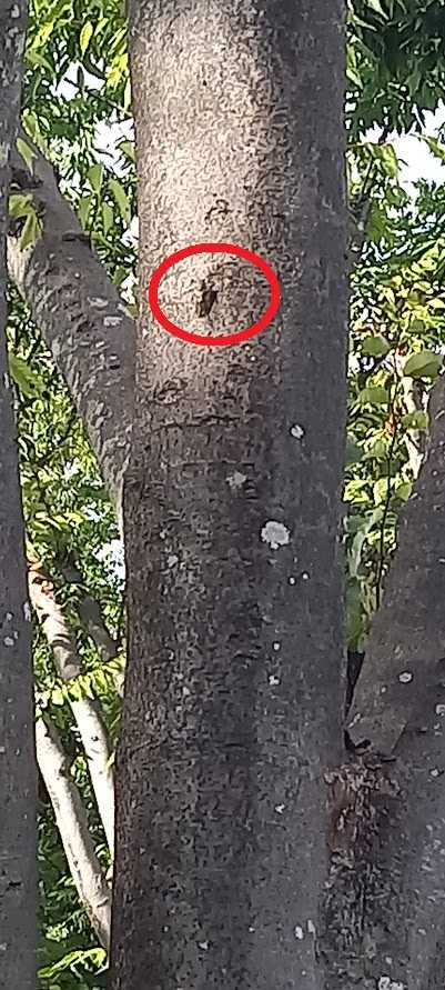 ついにニイニイゼミの姿を捉えた!ニイニイゼミの「ジー」という鳴き声がするようになってから2週間。我々探検隊(といっても僕一人ですが)は、ニイニイゼミの姿を求めて、樹を見上げてきた。「おっ!」と思っても、大抵は樹の模様であったり、コブであったりで、もうこの夏は、ニイニイゼミの姿を見ることは叶わないと、半分あきらめかけていたところ。本日16時、緑区役所前の樹木で、樹の幹にうごめく2体の物体を発見!見ると、梯子をつたって降りるように、1匹のニイニイゼミがもう一匹のニイニイゼミに近づいているではありませんか!思わず、スマホのカメラでパシャリ・パシャリ。そうこうしているうちに、いつの間に、1匹になっていたのでした。もしかしたら、ニイニイゼミのまぐわいの現場だったのかも。「俺、土から出てきてからずっと君のこと・・・」「えっ、私だって前から・・・」と気分が盛り上がっていたところ、無粋なオジサンがスマホでパシャリ・パシャリするもんだから、「危ない、逃げて・・・」「さよなら、忘れないから・・・」みたいに泣く泣く、2人いや2匹は別れたのかも。人間なら、ひと夏の恋ですが、セミ達にとっては、ひと夏(しかも2週間)しかない恋だったはず。そう思うと、映画・タイタニックで、恋の邪魔をするブルジョアの悪役(名前は忘れた・・・)になった気がして、ひどく気まずいのでした。2匹のニイニイゼミが今頃、再会していますように!!
