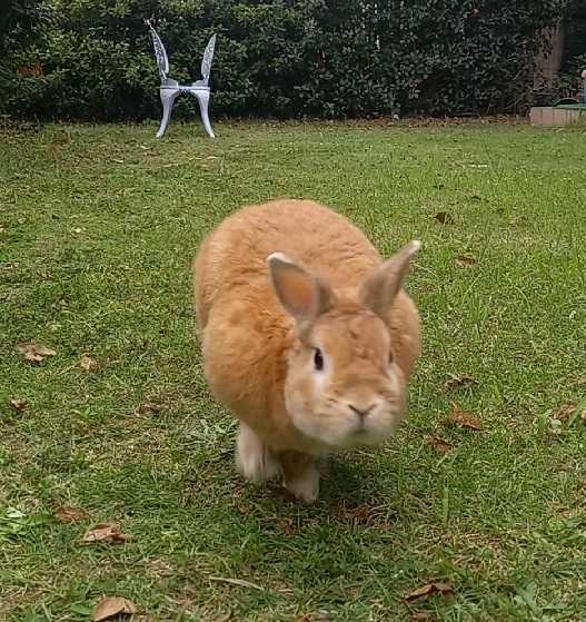 人馬一体という言葉がある。騎手と馬がまるで一つの生き物のように調和して動くことだという。モヒうさぎさんと僕の昨夜の庭んぽは、まさに人馬一体、いやウサギさんとだから人兎(じんと)一体とでもいうべきか。白いガーデンチェアが2つ並んだ周囲で追いかけっこ。互いの動きを観察して、モヒうさぎさんが動くと僕が逃げ、モヒうさぎさんが止まると僕も止まる。ダルマさんが転んだの要領だ。時に、モヒうさぎさんが意表をついて、ガーデンチェアの脚の間をすり抜けて一直線に向かってくる。慌てた僕が「オー」と驚くと、してやったりのモヒうさぎさんは、「ブーブー」言いながら、鼻の穴を膨らませて喜んでいる。昨夜は、折しも(ほぼ)満月。昨年の夏ににわかに自生したユリ(タカサゴユリ)の花も今が盛り。月の明かりを受けて輝いている。モヒうさぎさんと、うさぎさんが餅つきをしている(ほぼ)満月を眺めながら、「今日も、うさんぽ楽しいね」と、モヒうさぎさんの頭をナデナデ。僕もうっとり、モヒうさぎさんもうっとり。モヒうさぎさんと僕は、馬が合う、じゃなかった兎(うさ)が合う。