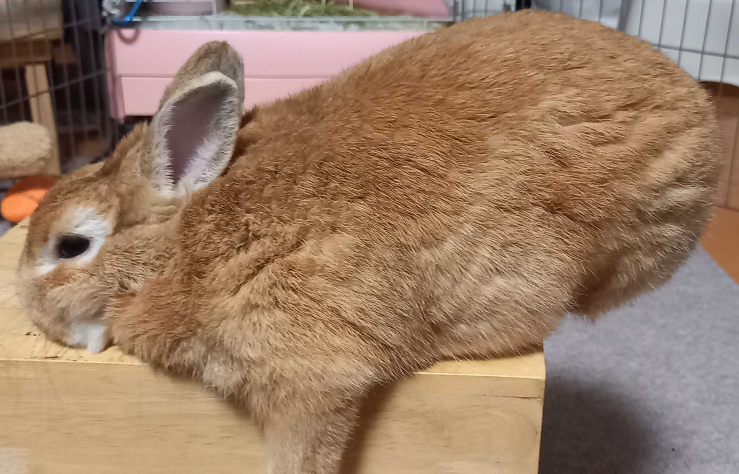 モヒうさぎさんがボロボロだ。背中からお腹のいたるところで、茶毛・白毛が浮き上がり、寝ぐせのように飛び出している。通常は、逆向きに撫でた時に毛が戻っていくロールバックの毛質の美うさぎなのに、今はボッサボッサのボサうさぎ。落ち武者姿になり果てた。ナデナデすると毛がゴッソリ。抱っこするとTシャツに毛がビッシリ。ブラシや集毛ミトンをかけるとコンモリと毛が集まるが、その抜け毛の量は増すばかり。1か月前から始まった換毛が、今や盛りの絶賛換毛期。昨年は、ブラシでゴシゴシと擦りすぎて、肌が赤くなってしまったので、今年は、やさしくゴシゴシしているので、換毛期が長くなっているのかもしれない。そんなモヒうさぎさんのゴシゴシの後は、僕自身のゴシゴシ(洗髪)。今日はなんだか洗面台につく抜け毛の量が多いような・・・。齢50超のオヤジとしては、少々不安になり生え際を確認するも無事。脱毛期ではない模様。この猛暑で、人間も換毛期なのかもしれぬ。換毛期ならいっそ、モヒうさぎさんみたいに微妙に色が変わるといいな。モヒうさぎさんと同じチェスナット色の髪に憧れる、オヤジなのでありました。