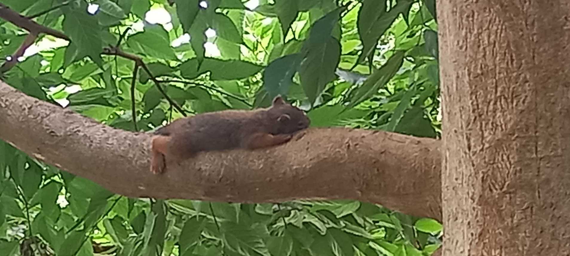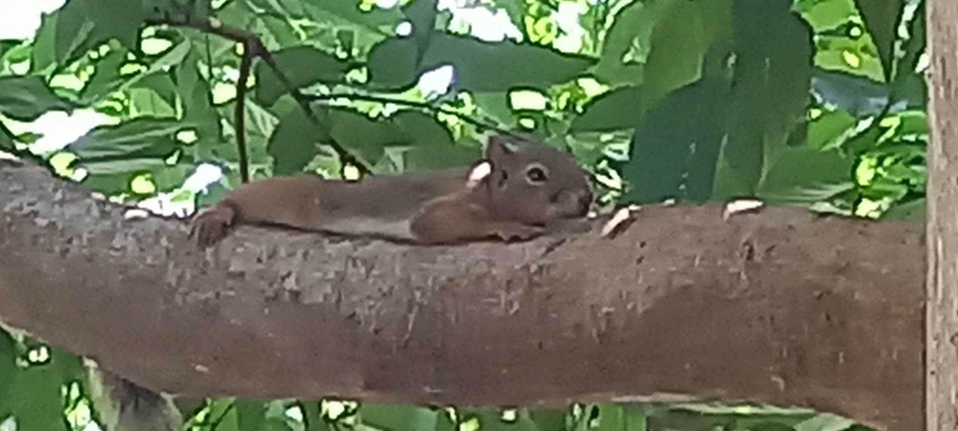 リスがそんな姿になるのは、猛暑の中で少しでも冷たいところに体を多く接して熱を逃そうという、涙ぐましい生存競争なのだとか。