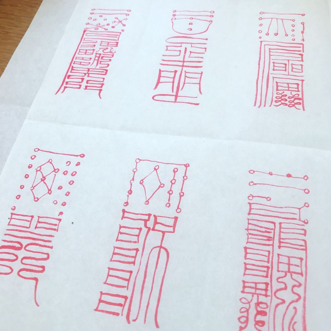 こんにちは!本日は早朝より霊符の作成をしておりました 鎮宅霊符は道教由来の太上秘法鎮宅霊符七十二符です風水鑑定しておりますと、鬼門除けとかお札とかありませんか?とのご要望があります。私が作れるのは、お守りの意味がある護符特に災いを抑えるのに効果があります風水鑑定をご依頼いただいた方にお分けしております霊的浄化、健康、仕事、金運、人間関係の悩み、また達成したい目的に応じて一枚一枚心を込めてお作りしております霊符というと、ちょっと怖いイメージがありますが、幸せになるための御守りでコツを掴めば自分で書いても良いものですと言っても、書き方は秘伝ですので一般の方には難しいです図形・文字つ一つに意味があります篆法で描いております販売方法も模索しておりますがなにせwebリテラシーが低いもので、、、良い方法がありましたら教えてくださいお問い合わせはtokuherb★gmail.com↑★を@に変えてね