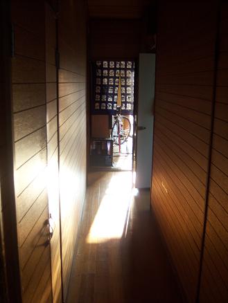 先週一週間は午前中が秋のように涼しくて午後は28度くらいに程々に暑くて、夜になると湿度が75%くらいに蒸し蒸しして夜なのに真っ白になる気持ち悪い毎日だったので8月なのに秋になってしまったのだと思っていたら、数日前から真夏日&熱帯夜である(=_= )昼は家の中が32度で夜になっても30度で湿度が75%くらいだから息が苦しい。エアコンがないので涼める所がなくて唯一涼しいのは車の中。それもお盆開けから夫とラーが仕事場に車で行くのため夜にならないと車もない。例年の塩竃は寒い夏なのに最近は暑い夏になっている。侮ってはいけないのだった。そして震災前は西隣の家が隣接しているために1年間の殆どが行灯部屋となっていた夫の部屋は、西隣家が震災で全壊となって取り壊しになったため一年中西日の当たる部屋になった。無駄な廊下がすごく明るい。西日開通である。冬場は「明るくて部屋にいたくなる」と語っていた夫だが夏になるに従って西日が厳しくなり軒下にスダレを2枚ぶら下げた。だがしかし晴天の西日はスダレごときで弱気になったりはしない。スダレを通しても尚強烈に情け容赦無く照りつけるのである。この写真はスダレ越しの西日が無駄な廊下にまで反射している様子である。この無駄な廊下のこちら側、台所から見ると非常に明るくてうれしくなる。夫の部屋のドア、トイレのドア、台所のドア、南側の八畳のドアを閉めると真っ暗な廊下。脱衣所のドアを開けると廊下をふさいでしまうので開けられない無駄な廊下。4,5メートルくらいもある無駄な廊下はレイアウトをし直すと小さなウォークインクローゼットが出来そうだと毎日思っているから無駄な廊下と言いたくなる。ただ、く~たんがこの廊下でよく寛いで転がっていたり、猫達をシューーッと滑らせて遊んだりする事があるのでその点は楽しんでいる。そう言えば猫達が子猫時代、この無駄な廊下と八畳間と玄関フロアとを紐を垂らしてグルグル走って猫達を遊ばせていた。でも3年程で猫達は廊下走りをしなくなったのでやっぱり無駄な廊下。その廊下のこちらから見ると夫の部屋と無駄な廊下は震災前真っ暗だったのに今や家中で一番日当たりの良い部屋になった。但し西日に付きご注意。午後は痛いほどの陽射しに付きご注意。そんな照り焼き状態の部屋のベッドでく~たんは夫の帰りを待つように毛布にへばりついて寝ているのである。健気である。超ツンデレで特に私には厳しいく~たんは最近少し丸くなって来てたまには撫でさせてくれる事がある。夫の部屋にいればく~たんも鷹揚なんである。西日照り焼きでもく~たんには夫の匂いに満ちた素敵な部屋なんであるヽ(゚∀。)ノ