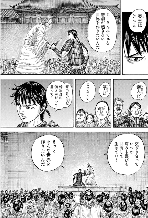 最初の城を攻略した後の信と韓の民との間の話がすごく良かったです