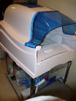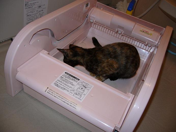 【購入】yahooオークションにて落札【価格】5500円~7000円くらい(落札相場)【動作】排泄後10分で動作、時間の変更不可回収ボックスの開閉は櫛で押し上げ(制御なし)櫛の動作中に猫が中に入っても自動停止なしで容赦なく動くが、櫛の後ろ側にはバネ式の感知センサーがあるので猫を巻き込みません【メンテナンス】底面が引き出し式で取り外し可能櫛部分は3箇所のねじ止めで取り外し可能回収ボックスの取り外し可能回収ボックスは専用の紙箱を内側に装着、倒産品のため専用紙箱は入手不可、でもケーキの箱や、試してませんがパフォーマプラス用の回収バックで代用できる気が。【保証】倒産品のため保証なし。よって壊れたらそれっきり。【初期購入時のオプション】・専用砂(匂い、ほこり共にひどくてその上固まりも悪い)リッターメイドやパフォーマ・プラスには標準で付属している専用カーペットデッキのようなものはありません実際、猫が飛び越えるので不要っちゃ不要なんですが【総評】回収ボックス周りを改善した廉価版リッターメイドといった感じ。構造が良く似ています。サイズもリッターメイドの小さいほうと同じくらいかと。壊れやすいのか1ヶ月の使用で壊れました。(櫛が途中で止まる、電源を入れ直しても動かない)安いので手軽に全自動トイレを試す事が出来ますが、倒産品のため壊れたらそれっきりなので、うちのように結果的に高いものにつく可能性も。運よく頑丈なものを入手出来れば、機能面+価格面だけで言えば全自動トイレ3種類の中で一番おすすめです。総合的に言えば壊れやすいものなのに保証が一切受けられないのでおすすめしませんが。回収ボックスの専用紙箱を取り外してそのまま捨てる事が出来るので、個人的にはリッターメイドより好き。【評価】★★★★☆この日記用に撮影しようと壊れたニャンダフルを引っ張り出してきたら、イブンさんが懐かしみに訪れました。