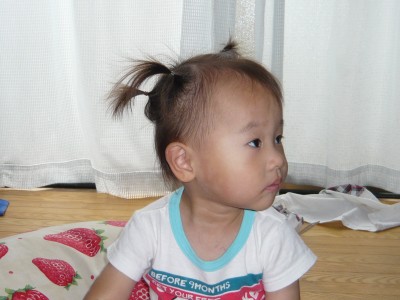 今日暑いですねぇ~もううちのフェレット君ばて気味です。まあ8歳と高齢なので、しょうがないんですが・・・最近毎日フル稼働でエアコン君頑張ってくれています。お姉ちゃんが髪を結ぶようになったので、自分も結べ!!と催促された時のやつです。最近お姉ちゃんと一緒がいいみたいで、よく真似しています。確かうちの弟も私と一緒に母親に髪を結んでもらった記憶が・・・しかもジェニー人形をよく取り合っていたなぁ~これは遺伝??(笑)少し遅くなってしまいましたが、交換品のお披露目です☆4MJさんにお洋服を交換していただきました☆こちらからはイエローベイブのチュニックがお嫁にBIT’zのパンダTシャツとチャイルドチャンプのチェックシャツそしてセラフのポーチと交換していただきました。凄く可愛いお洋服!!しかも3点も交換してくださいましたo(TヘTo) くぅ来年沢山活用させていただきますねありがとうございましたo(≧∇≦o)(o≧∇≦)o