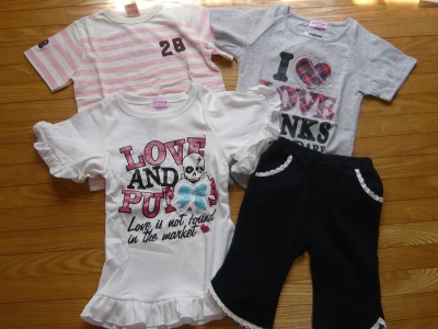 さて2回目の更新です。次は女の子です。以上4点でした。D.QUEEのボーダーTシャツノーブランドのTシャツ2枚THE BOXのパンツ1枚プチブラしか入っていませんでしたが、幼稚園着には丁度いいです。サイズも大き目なので、110でも来年着れそうですねさてこれからお迎えに行って来ます☆帰ってきたらJENNI(110)のネタバレしますね。■一部、混合サイズ登場♪めちゃカワイイDATの福袋♪2サイズ混合もあり!!Furann★DAT福袋こちら気になっています。小さいサイズはなくなってしまいましたが、110以上あるんですよね・・・template-まりもん img-cadied